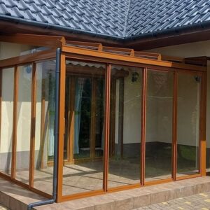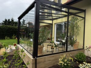 Oranżeria w systemie ramowym, z przesuwnymi szklanymi ścianami